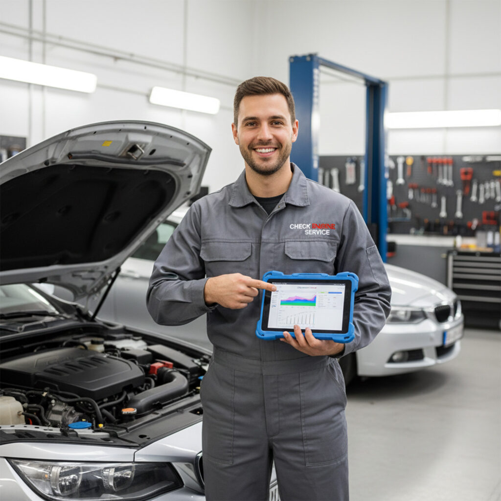 Не чекайте, поки маленький стукіт перетвориться на великий ремонт. У Check Engine Service ми не просто “крутимо гайки” — ми знаходимо реальну причину несправності. Чесна діагностика, жодних нав’язаних послуг та гарантія на роботу. Повернемо впевненість у кожному кілометрі.